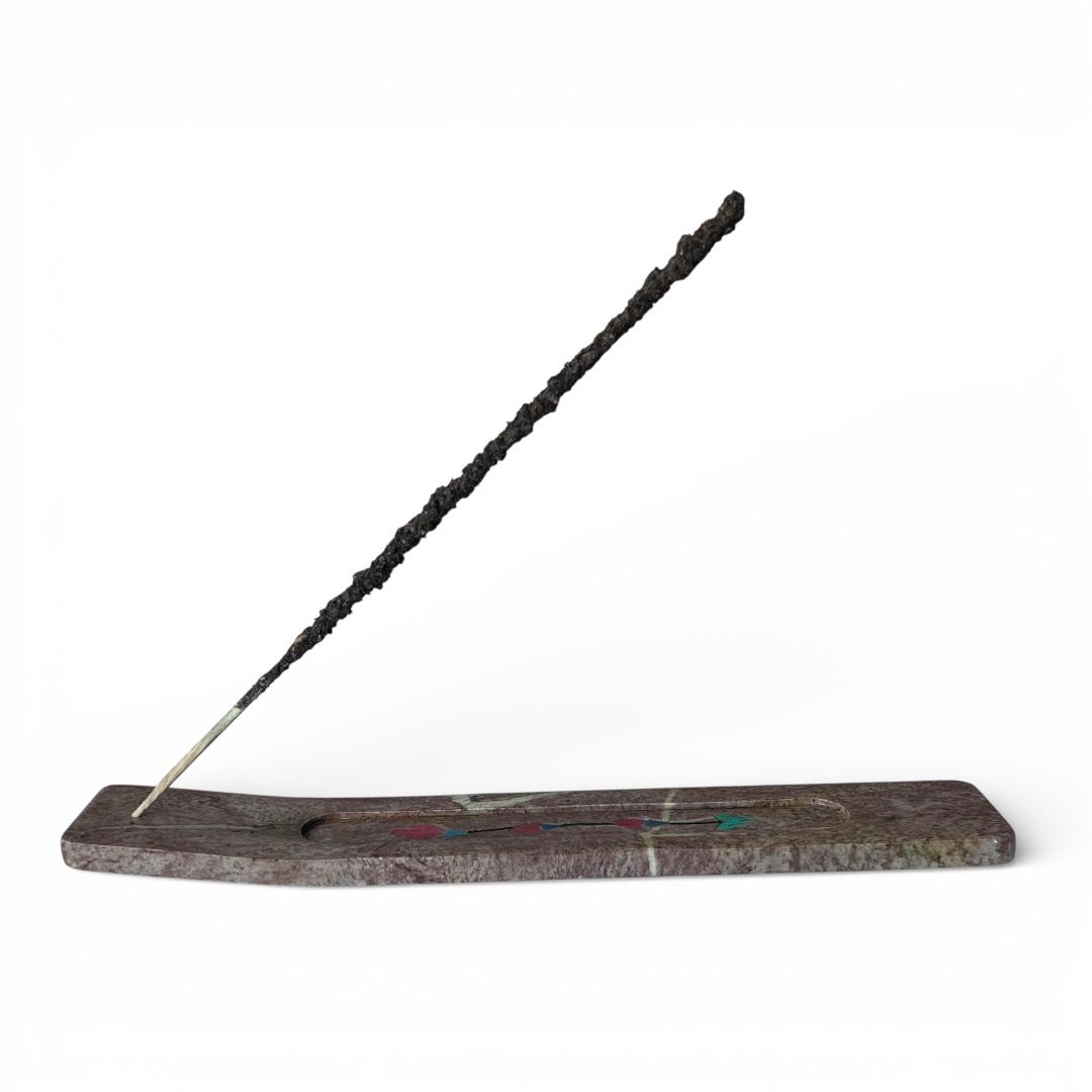 La pietra saponaria, nella sua tonalità naturale arricchita da delicati disegni di piccoli fiorellini, dona al prodotto un aspetto armonioso e raffinato. Le decorazioni floreali richiamano la natura e contribuiscono a creare un senso di equilibrio e leggerezza, rendendo questo brucia incenso ideale per ambienti dedicati al benessere e alla cura dello spazio. Il design allungato consente un utilizzo pratico, raccogliendo la cenere durante la combustione dell’incenso e mantenendo ordine nell’utilizzo quotidiano.